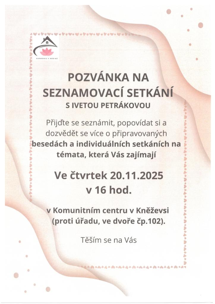 Místo konání: Komunitní centrum, Václavské náměstí 102, Kněževes, 27001