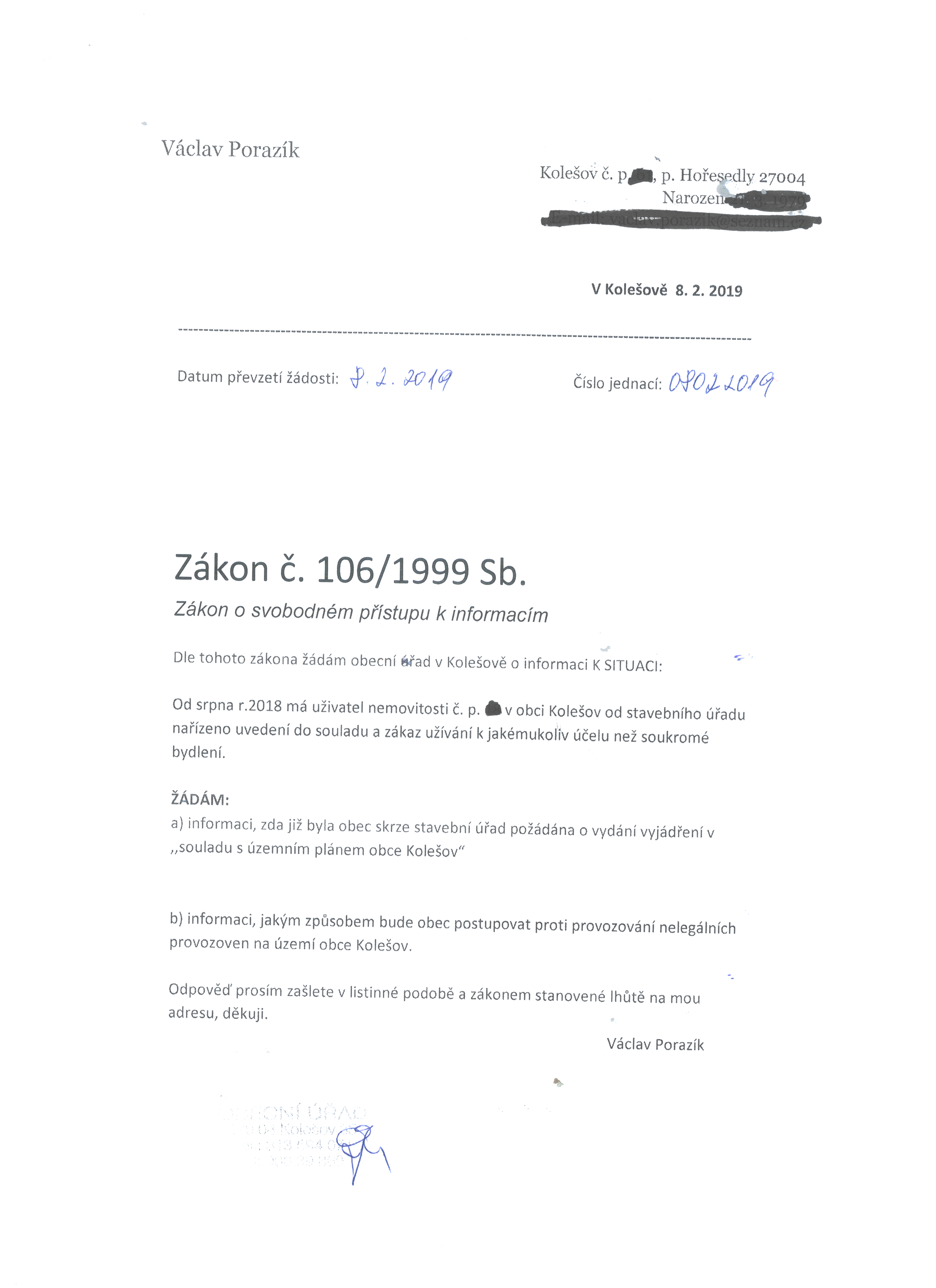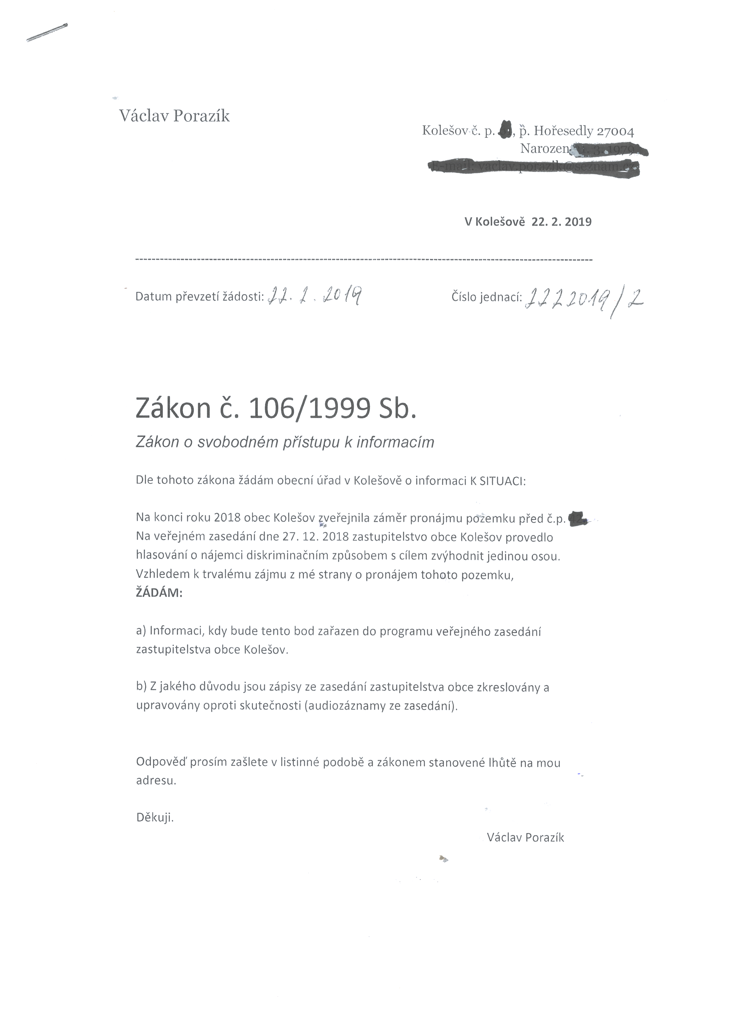 zákon č. 106/1999 Sb., o svobodném přístupu k informacím, v platném znění